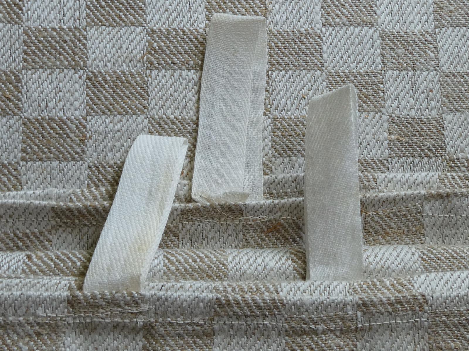 水通し前の未使用品です。織りムラがあります。1枚に薄い汚れ1箇所(画像参照)、別の1枚のループの縫い付けが甘い状態です。全体的にきれいで大変良い状態です。