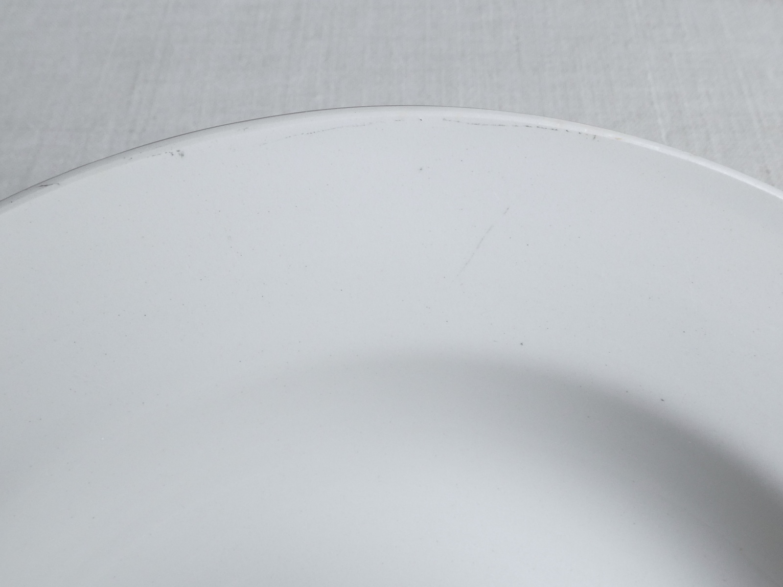 横縁に窯傷・釉削げ、表縁に薄い染まり箇所があります。艶やかできれい、とても良い状態です。