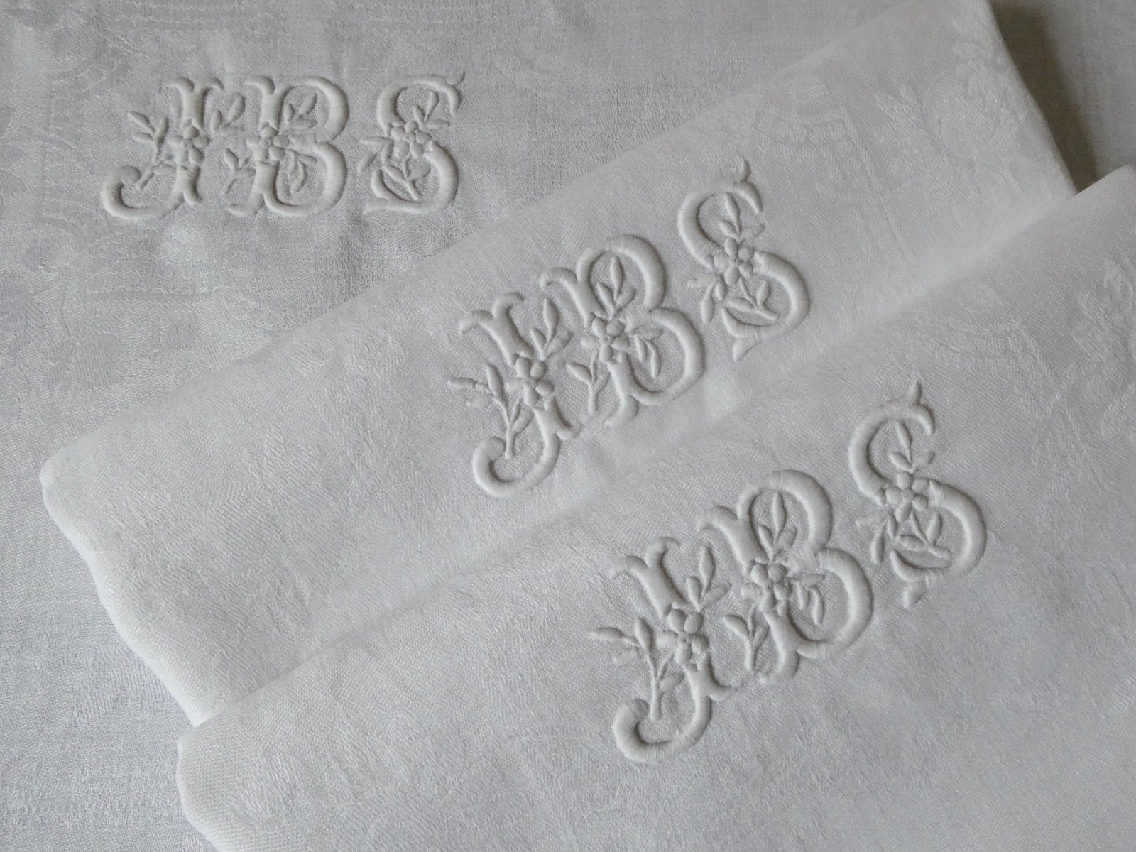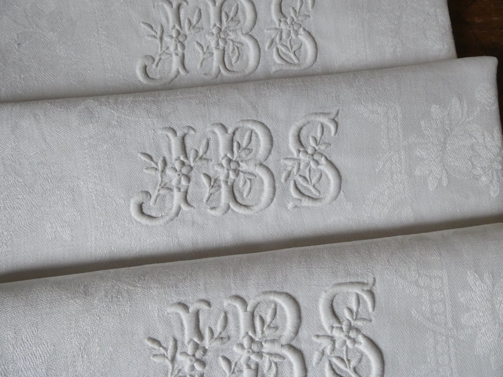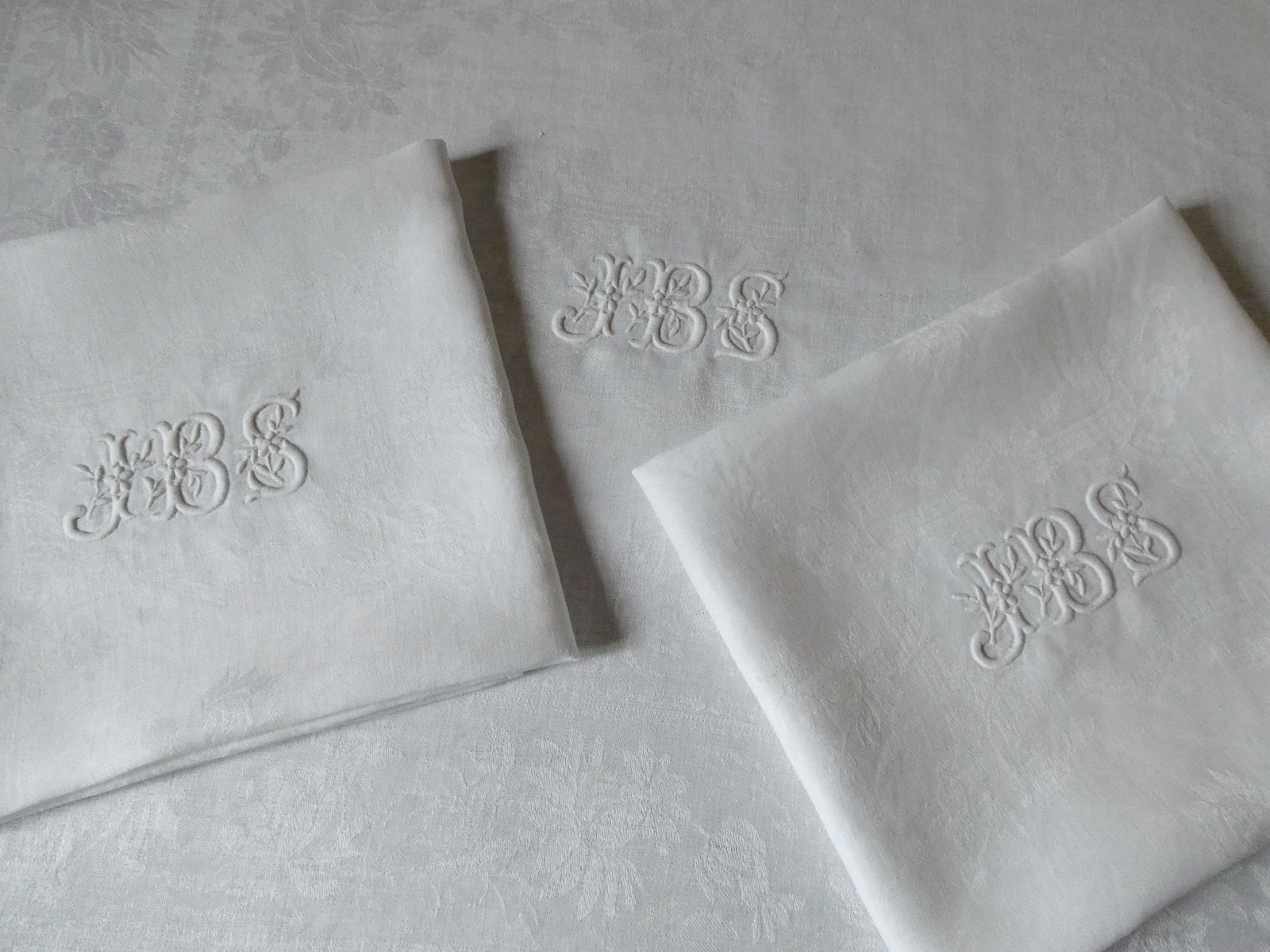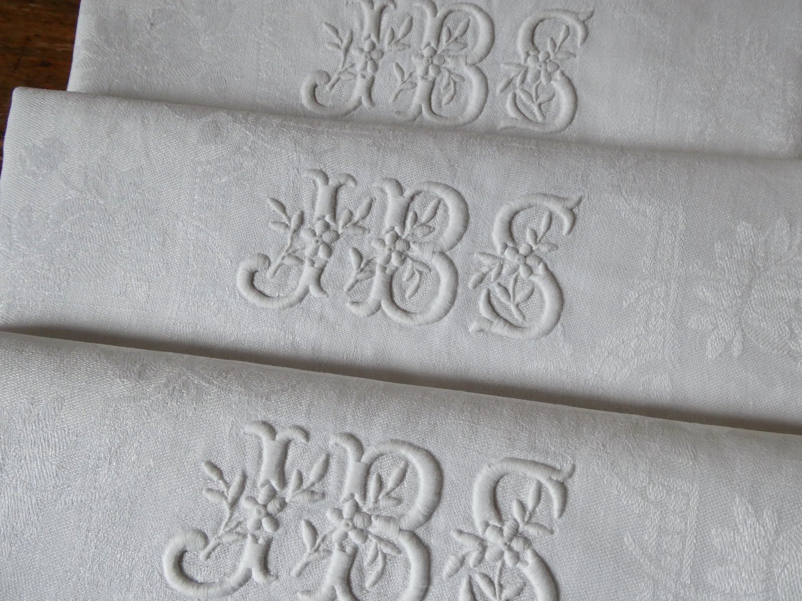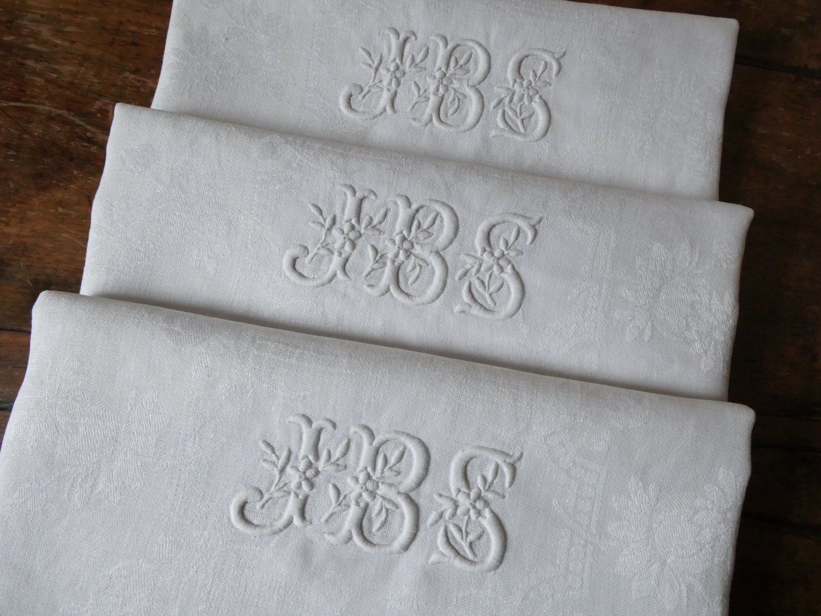 フランス製 アンティーク ダマスク織り セルヴィエット JBS 3枚セット