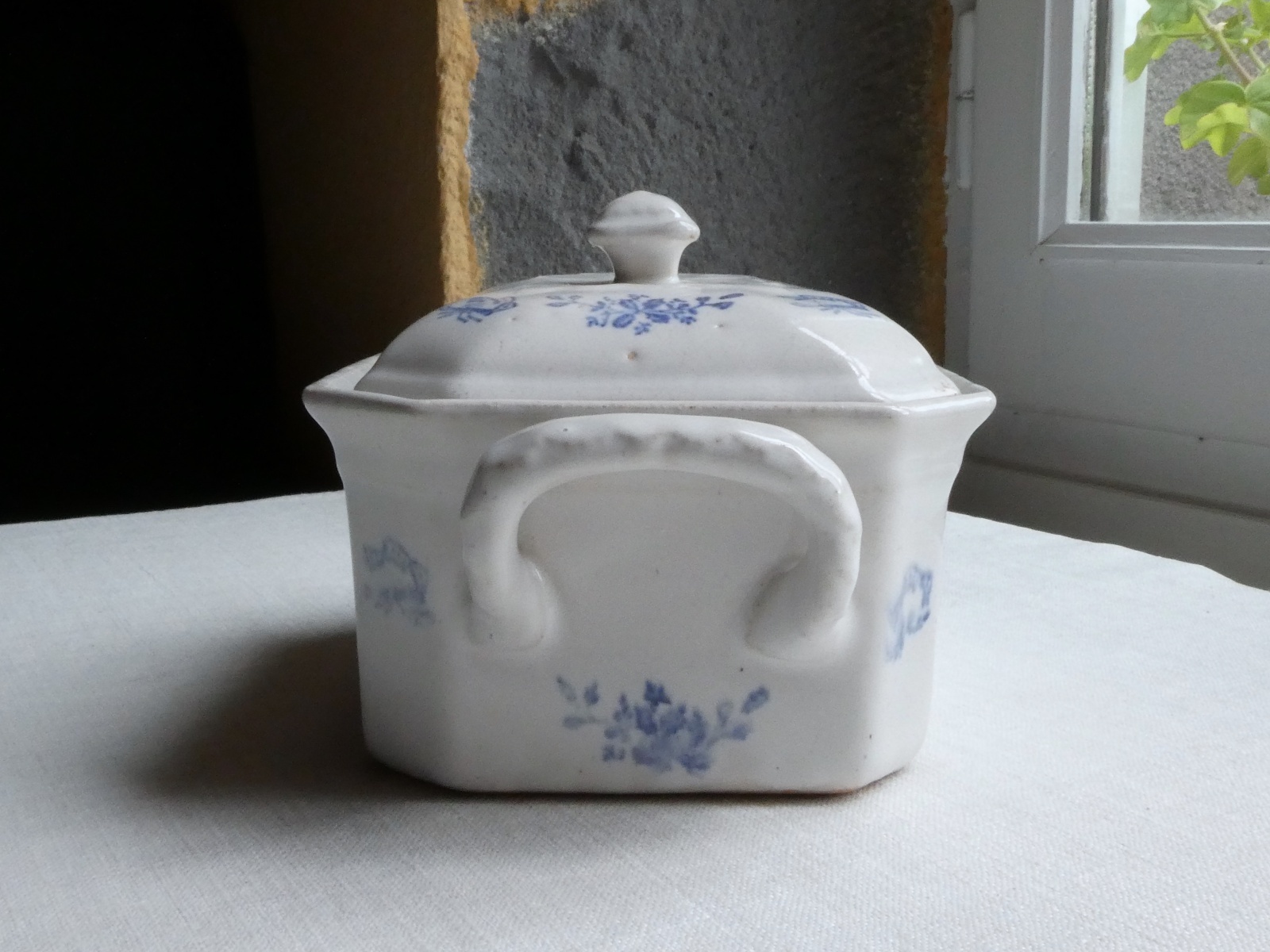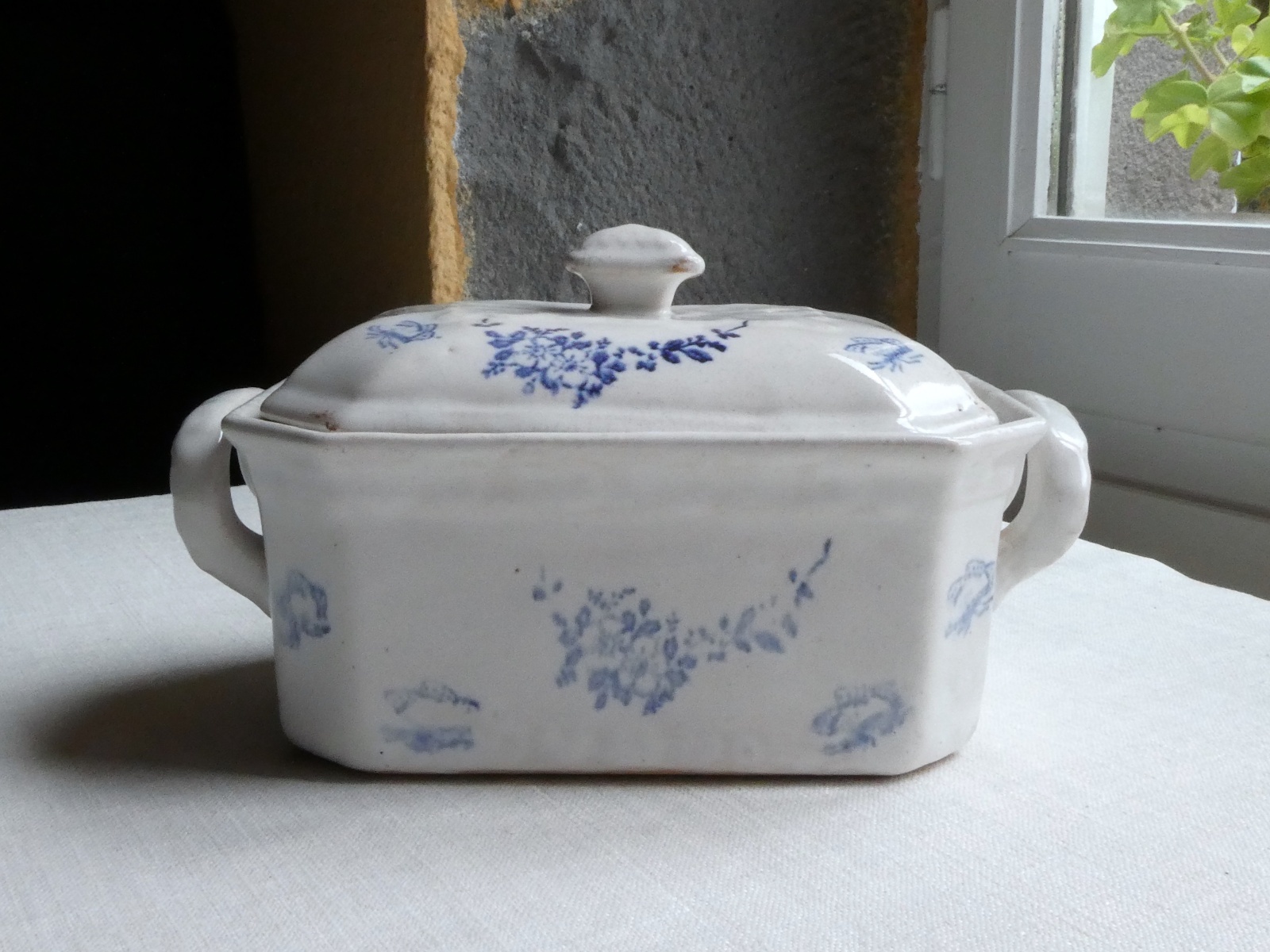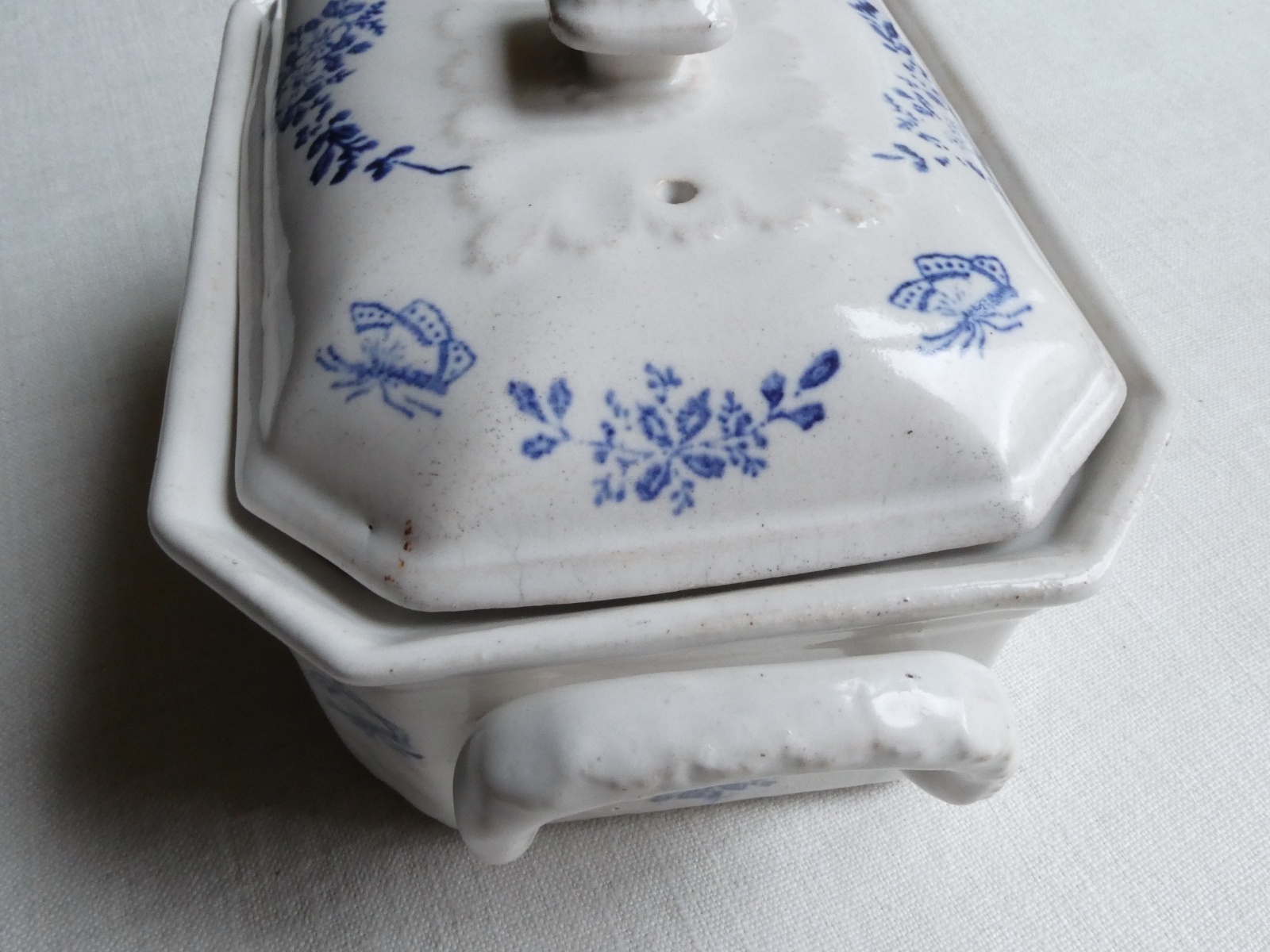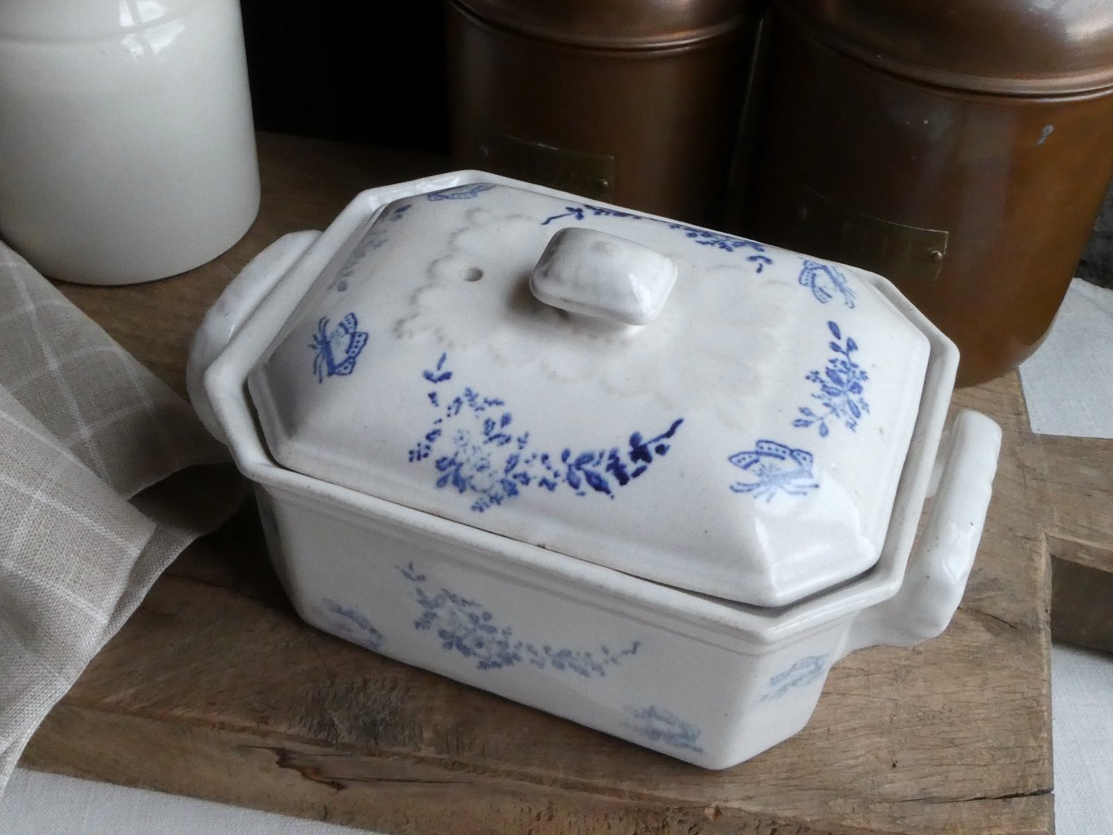 フランス アンティーク、青絵のテリーヌポット / パテポットです。