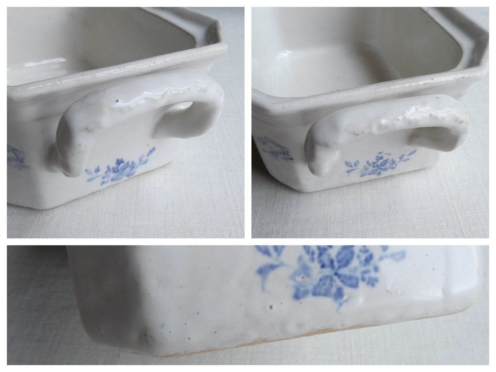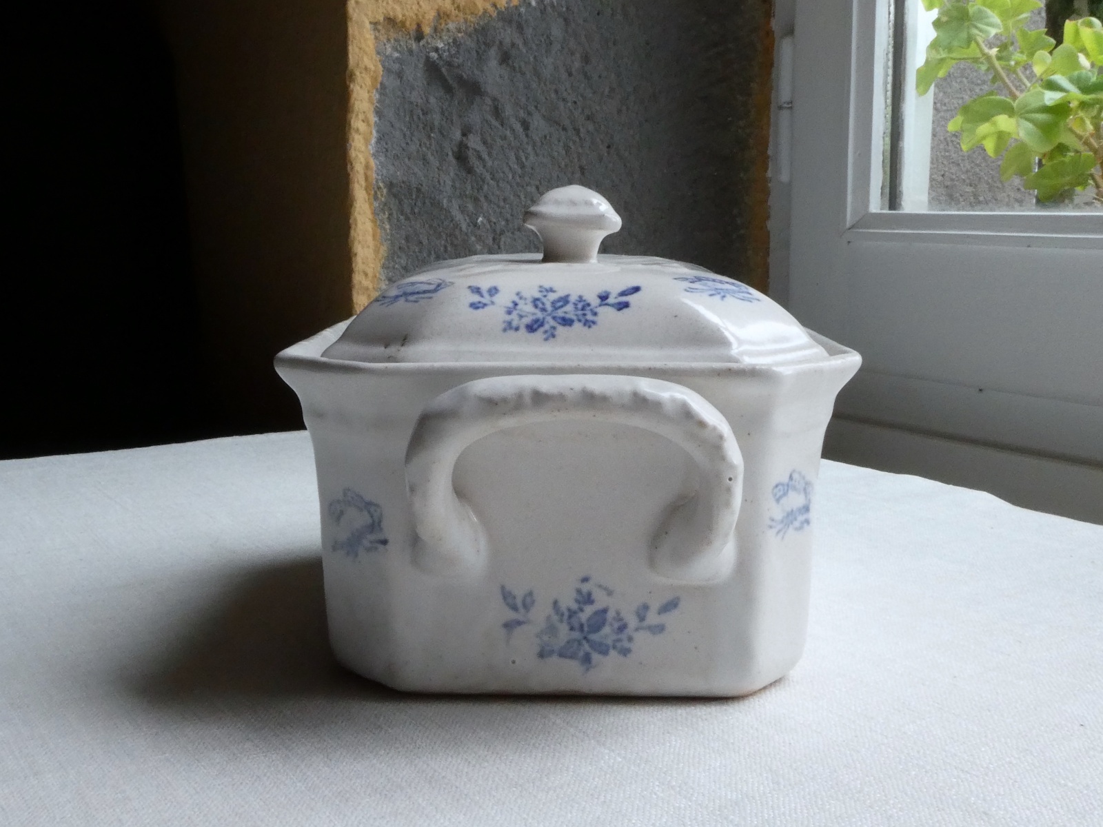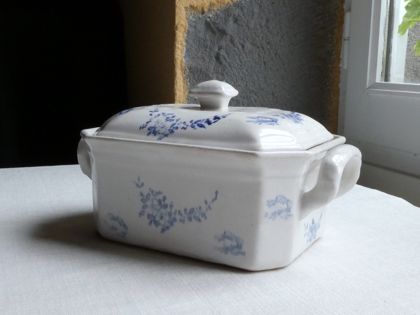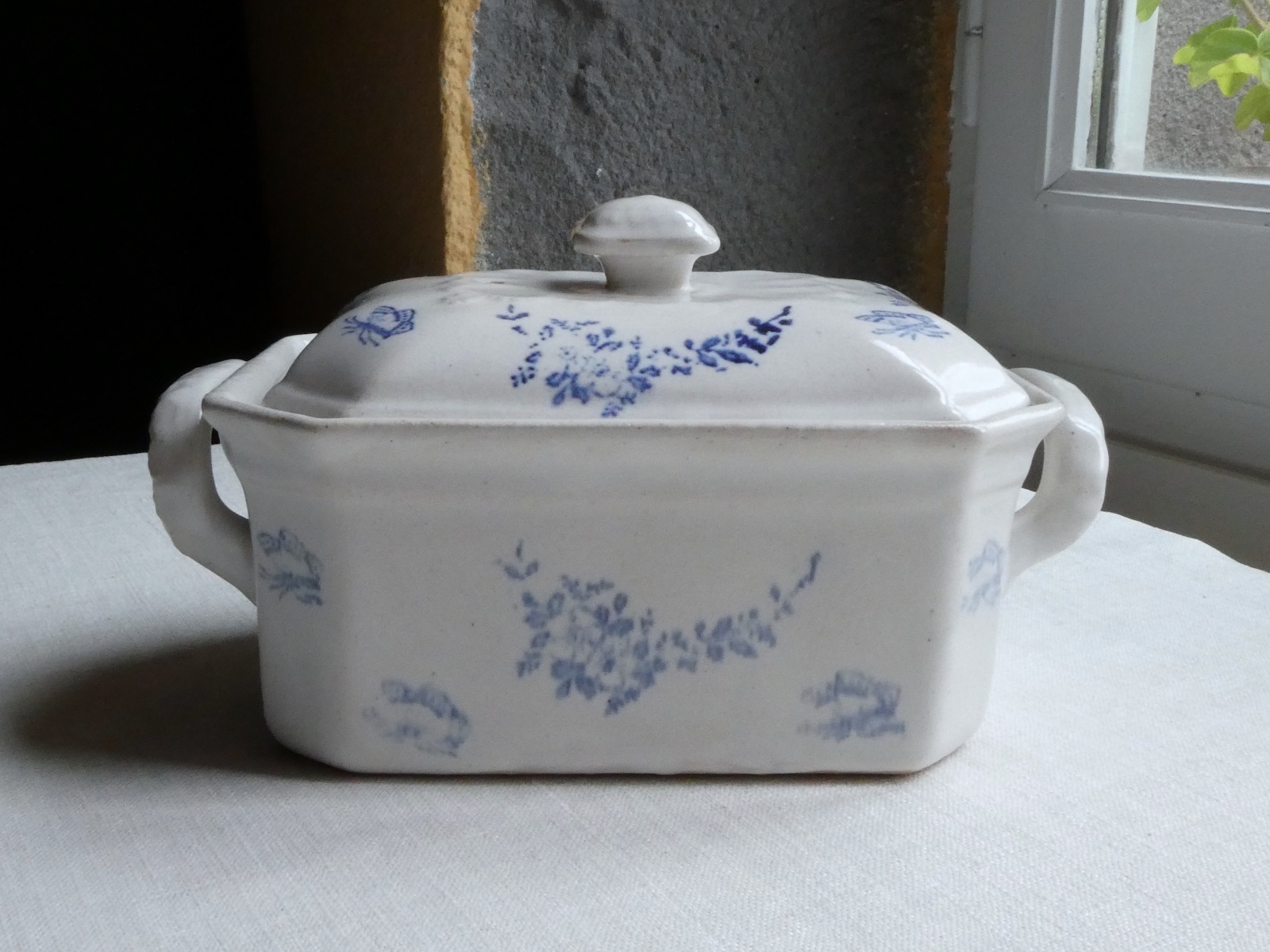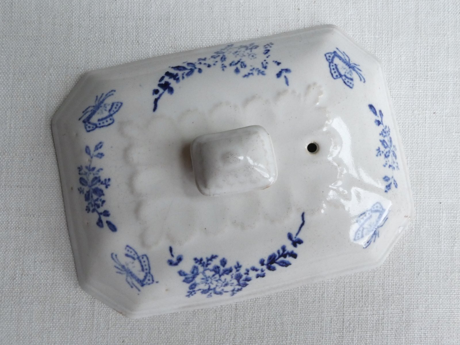 フランス アンティーク、青絵のテリーヌポット / パテポットです。