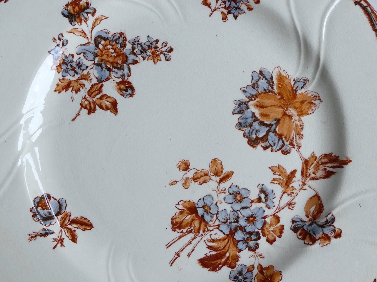 彩色ムラ、裏縁に製陶時の素地傷があります。特筆すべきダメージ無く艶やかできれい、大変良い状態です。