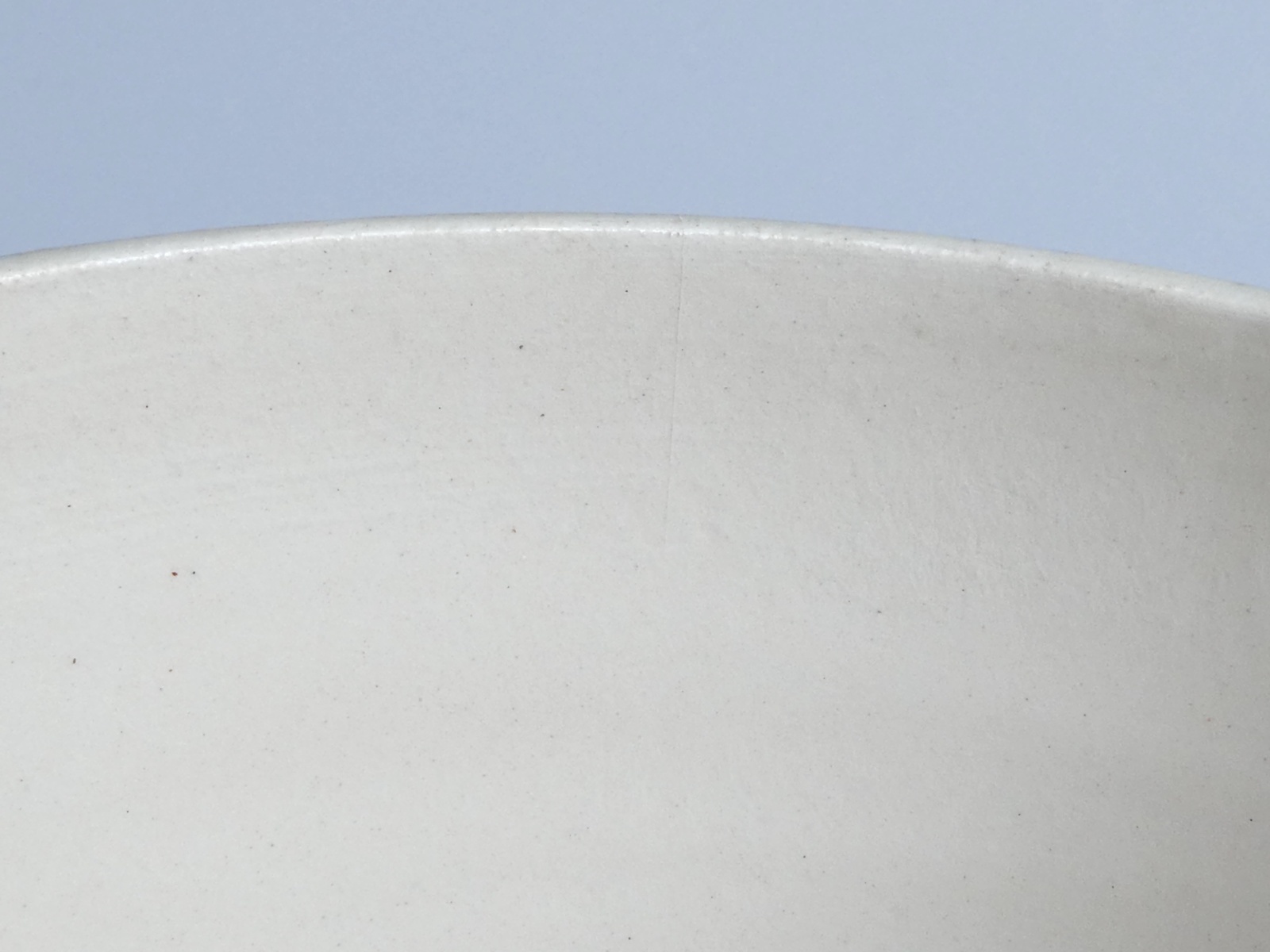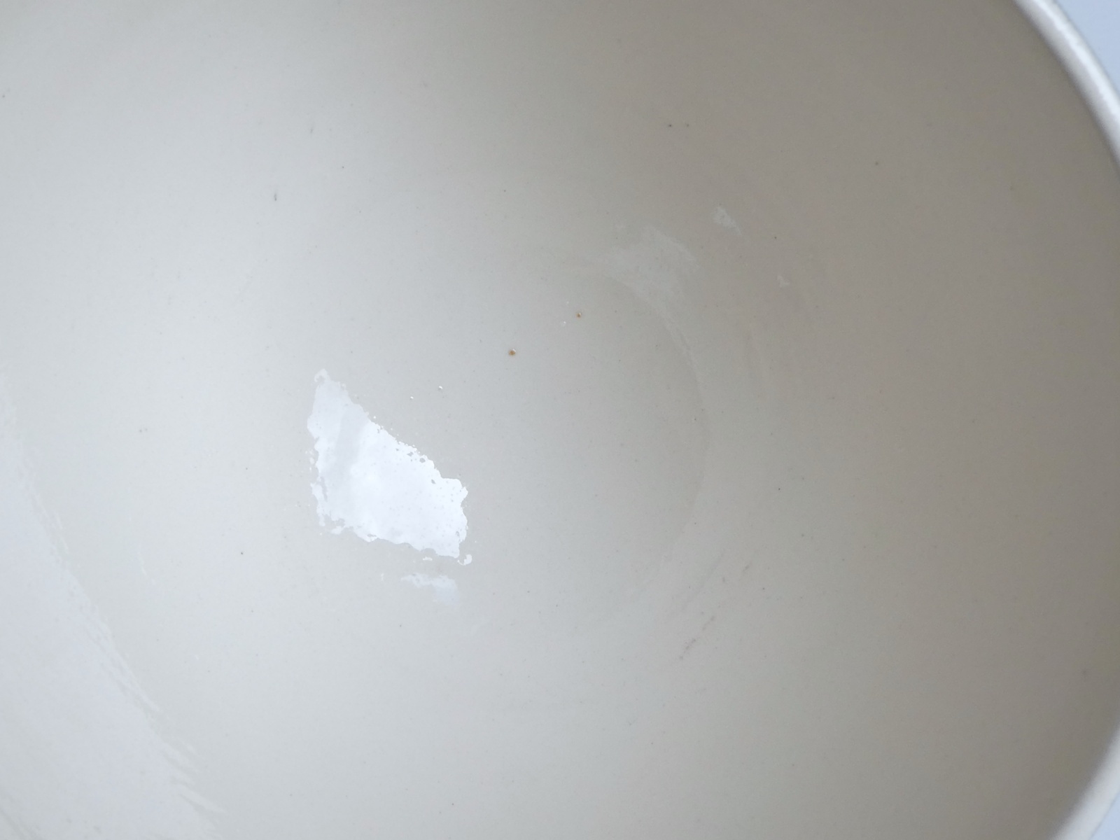 デッドストック、または同等です。転写ムラ、縁に釉付きが甘い箇所、窯出時の温度変化で入ったと思われるラインが内縁の釉薬上にあります。艶やかできれい、大変良い状態です。