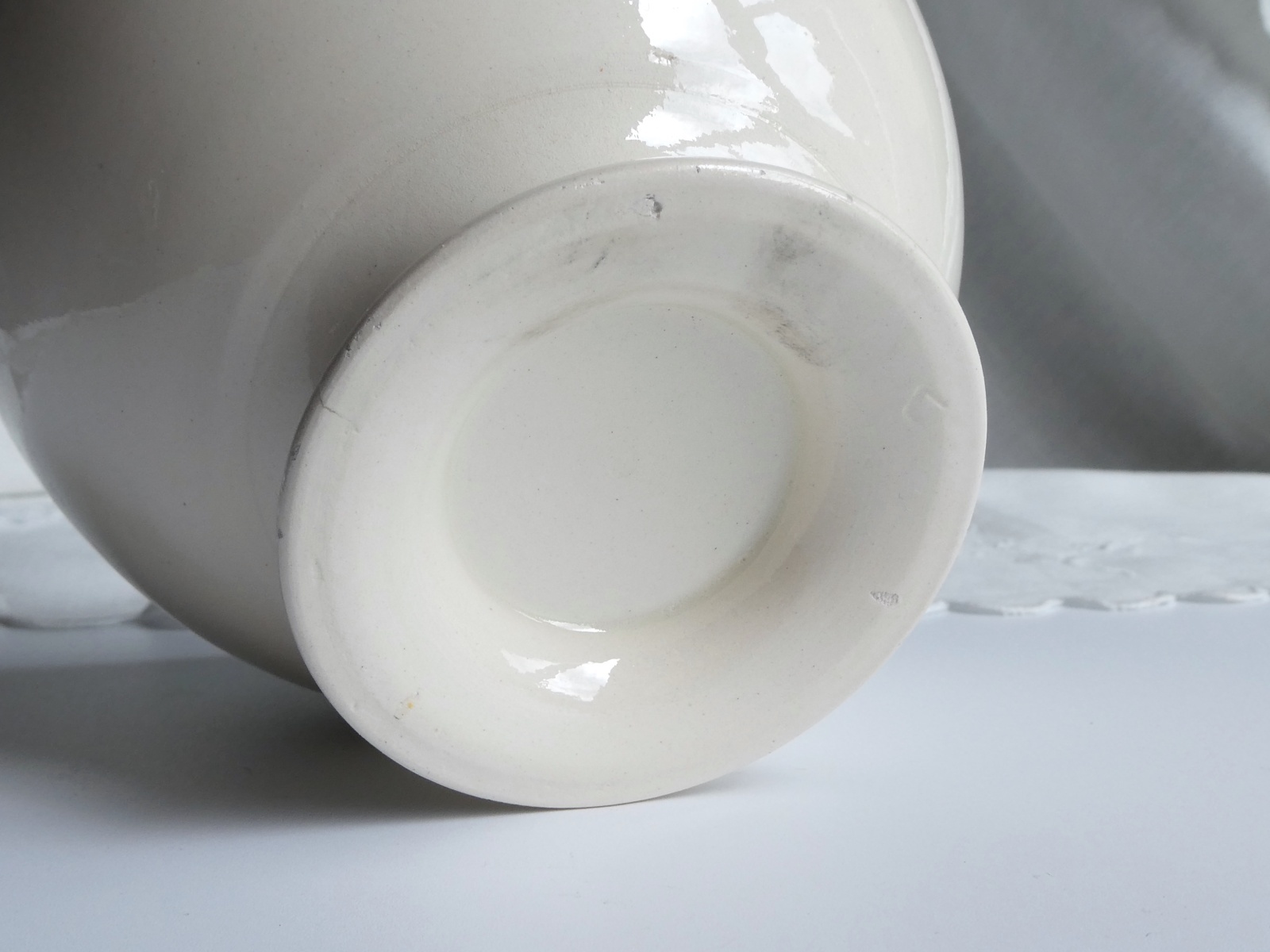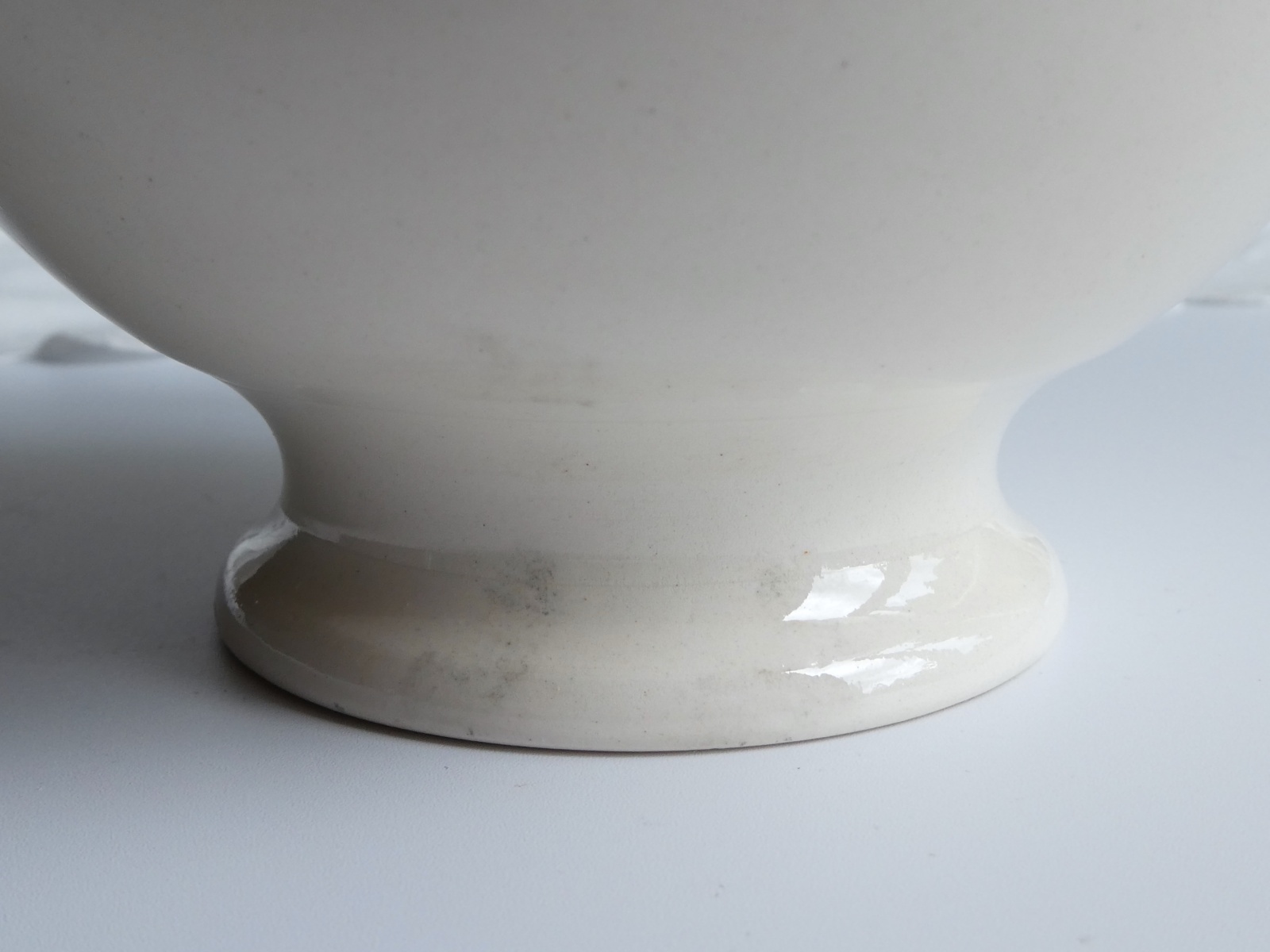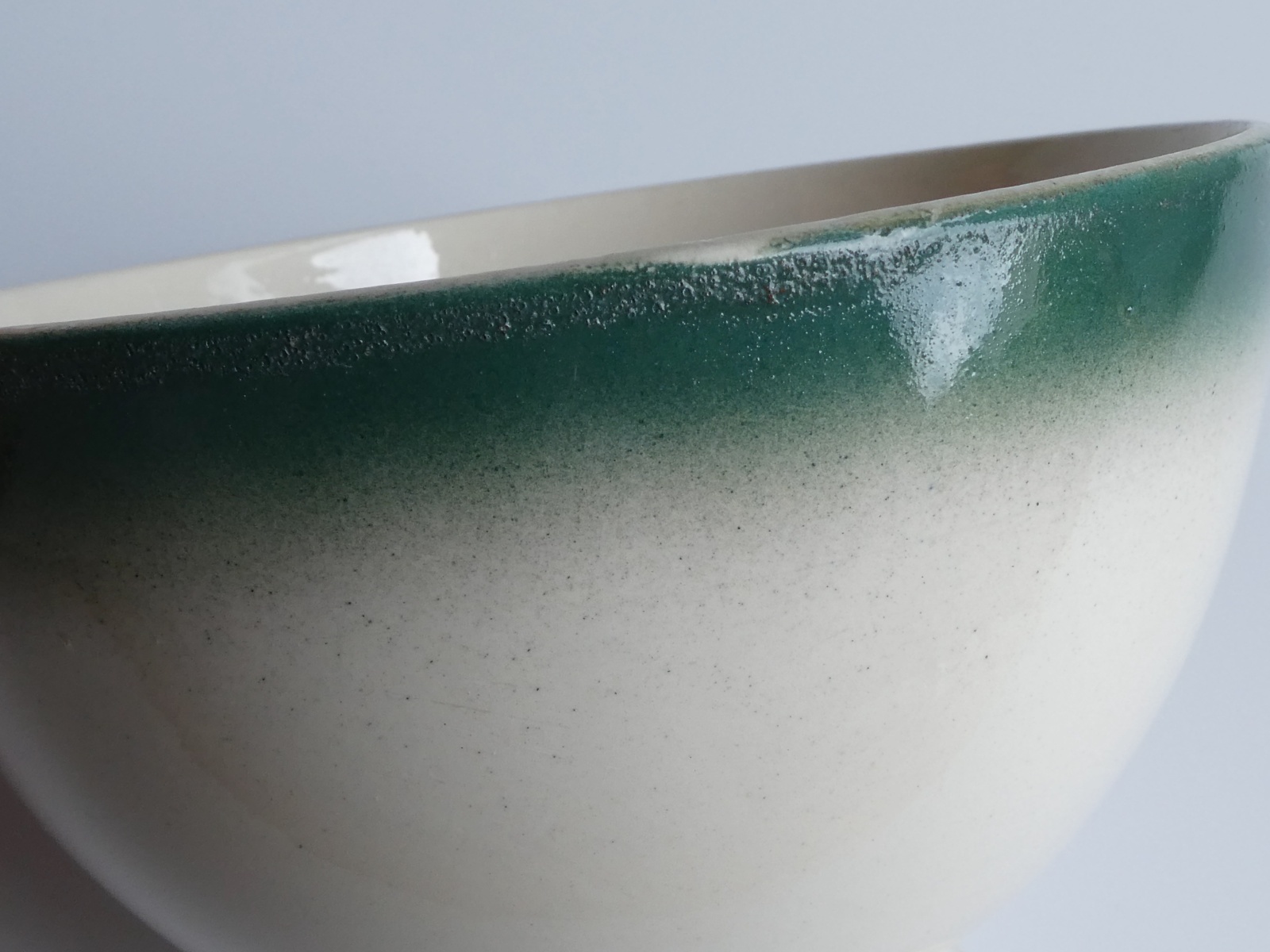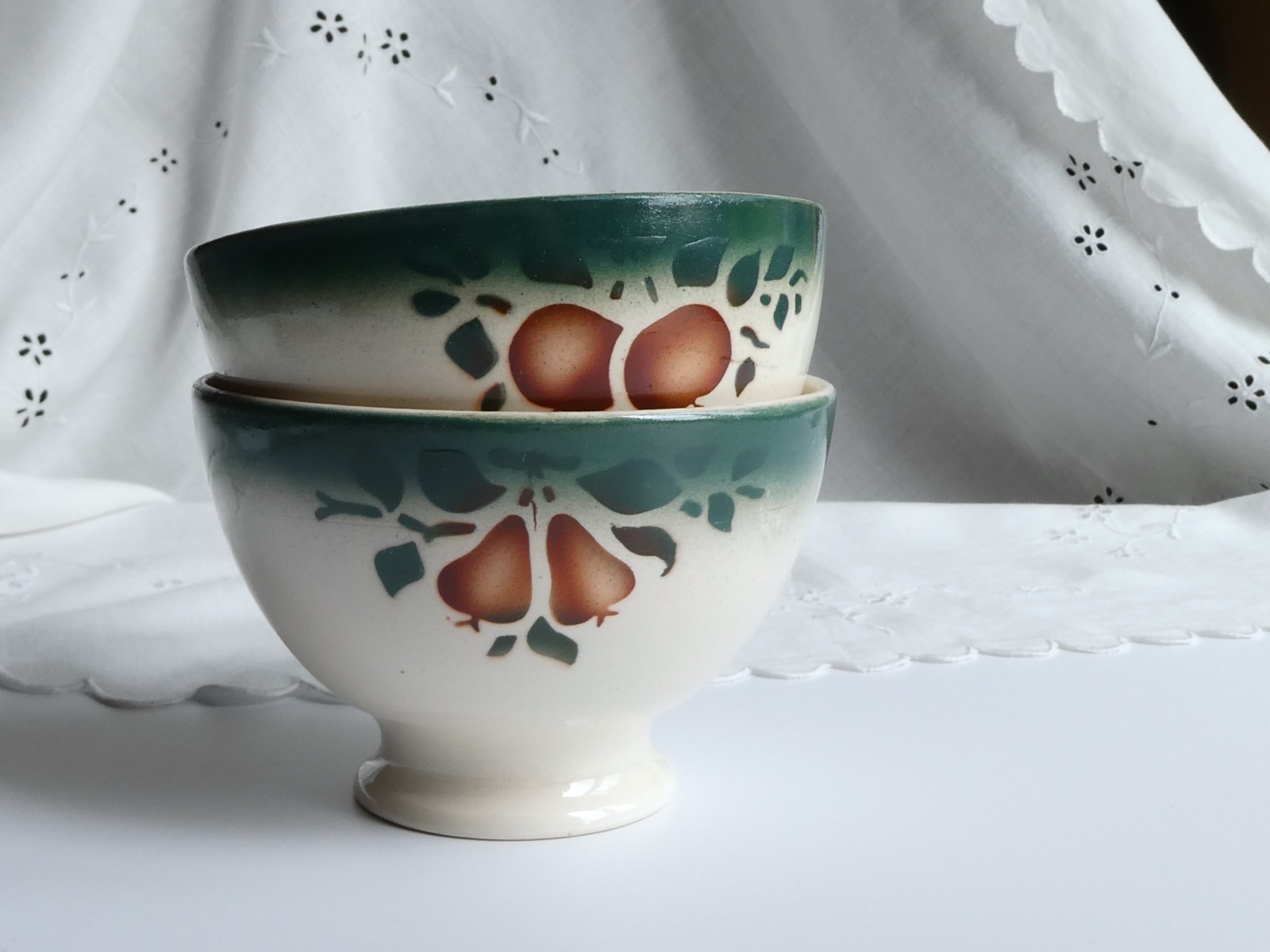 深さがあるコロンとした形状のボウルに綺麗なビリジアンのぼかし、洋梨のステンシルが何とも愛らしいフランスのエスプリが詰まった一点です。