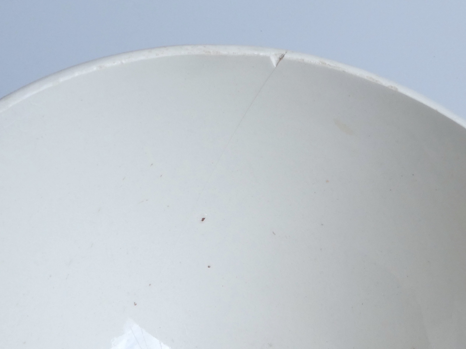 縁に欠けを伴うライン1箇所、外縁に小傷、見込みに三脚跡・点傷が2箇所あります。その他艶やかで良い状態です。