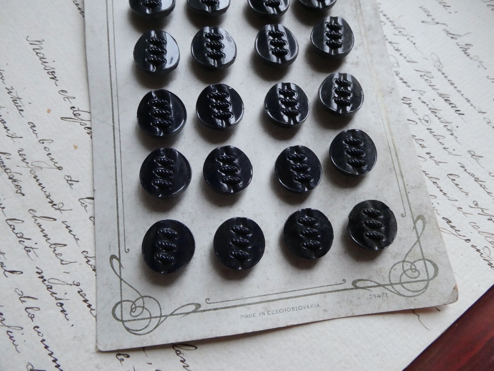 チェコスロバキア製、アンティークのガラスボタンシートです。