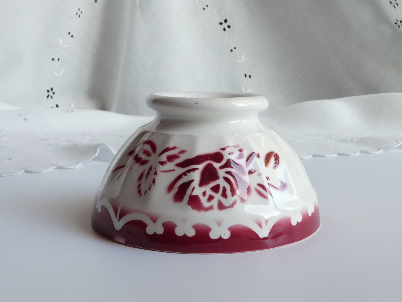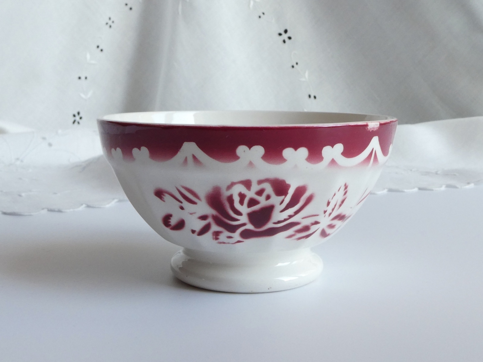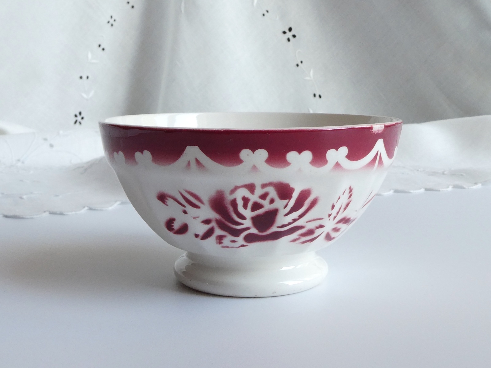 ローズ柄と縁には可愛らしいステンシル、ちょっぴりぼかしが入った様子がきれいなフランスのエスプリいっぱいの愛らしいボウルです。